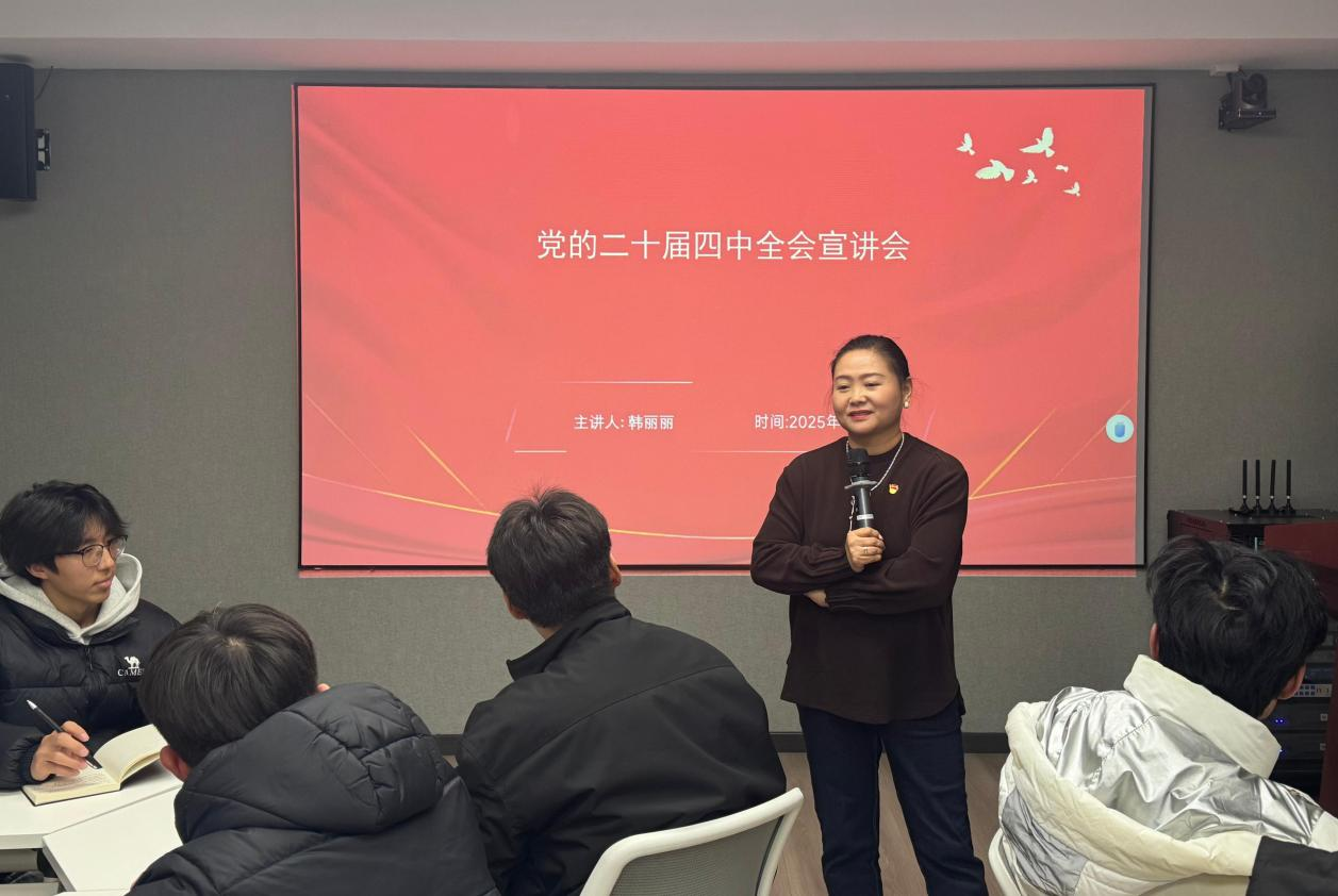 为深入学习贯彻党的二十届四中全会精神,让党的二十届四中全会精神在青年学生中落地生根、入脑入心,进一步筑牢青年学子的思想根基与行动自觉。近日,洛阳科技职业学院文远书院党总支在至善大厦格物厅组织开展学习贯彻党的二十届四中全会精神主题宣讲会。本次宣讲会由文远书院党总支书记韩丽丽主讲,文远书院全体入党积极分子参加宣讲会。